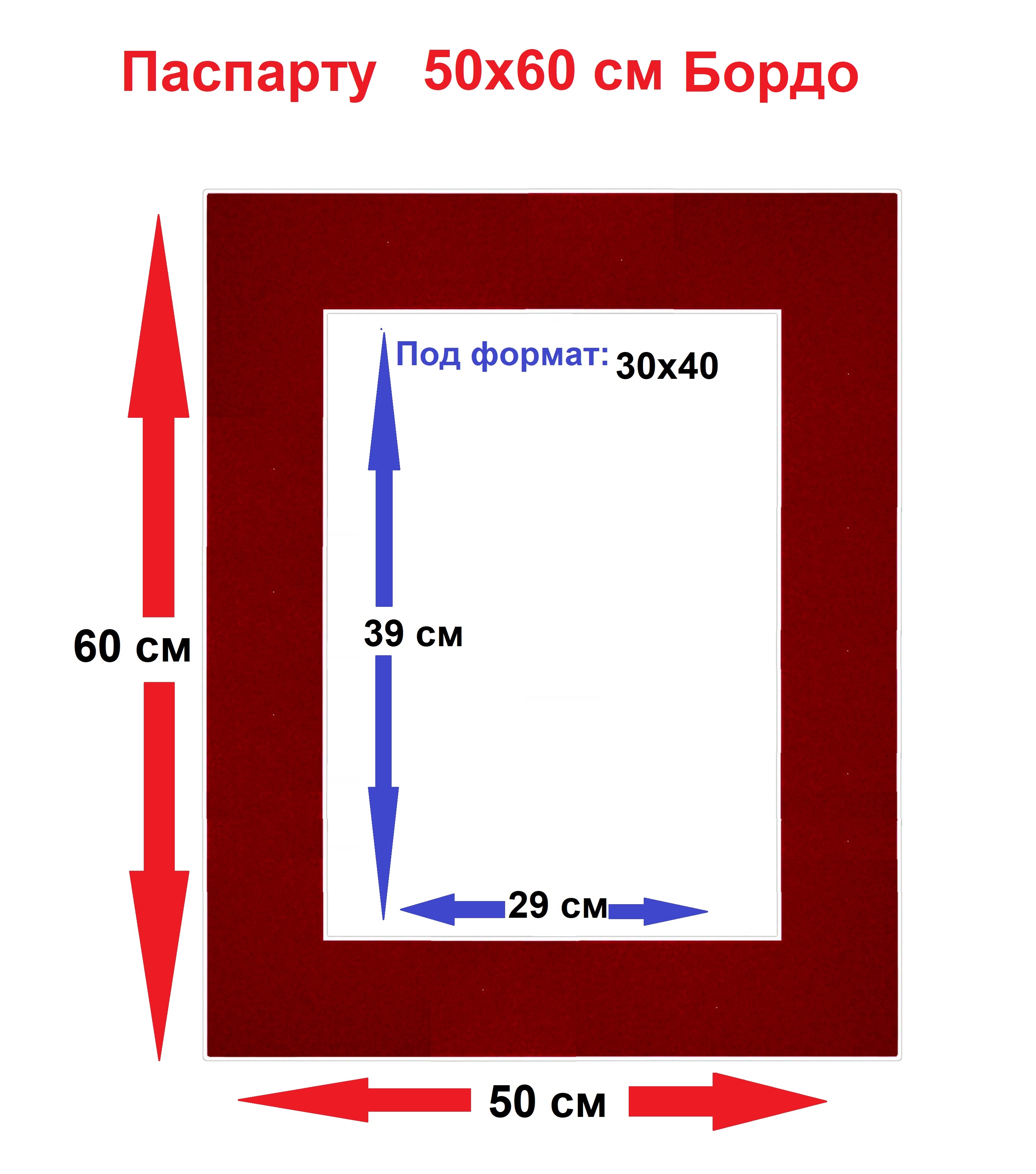 Паспарту бордо 50*60 под формат 30*40 см 1 шт.