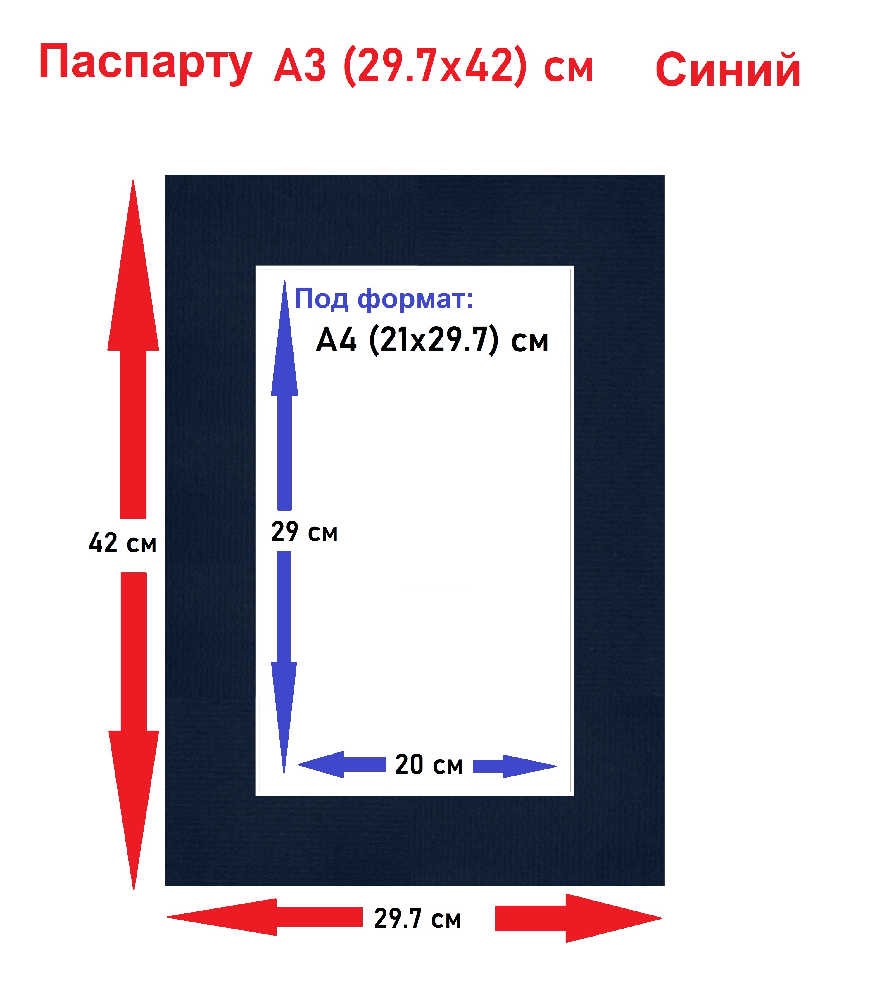 Паспарту синий А3(29,7х42) / Окно А4(21х29,7) см